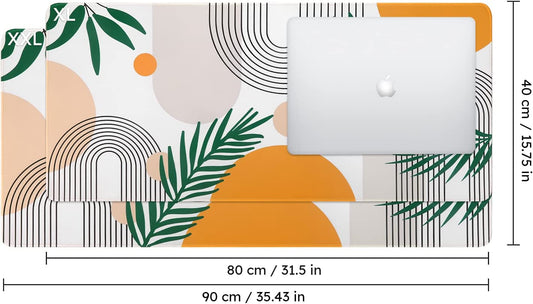 Extended Gaming Mouse Pad (35.4X15.7 In), Large 3Mm Non-Slip Rubber Base Mousepad with Stitched Edges, Waterproof Keyboard Mouse Mat Desk Pad for Work, Game, Office, Home-Elm Leaf